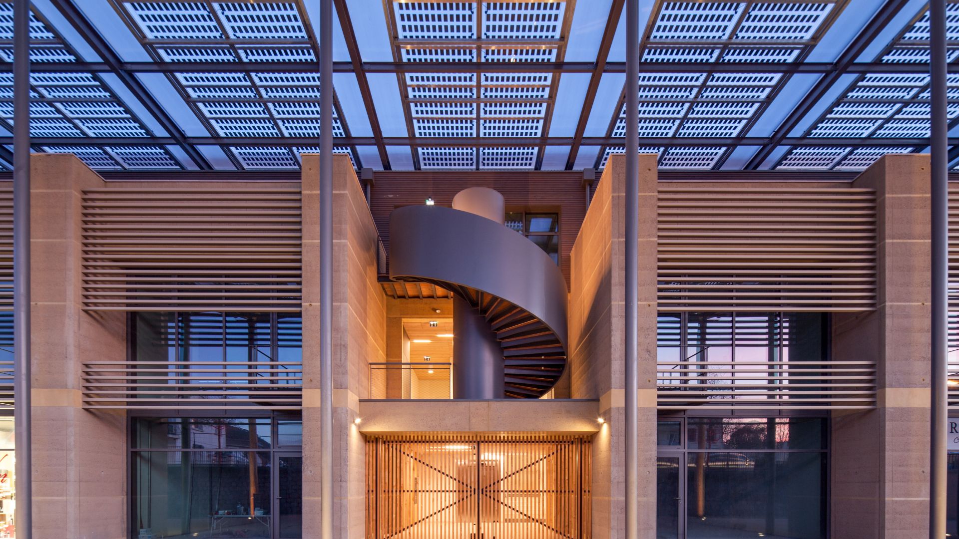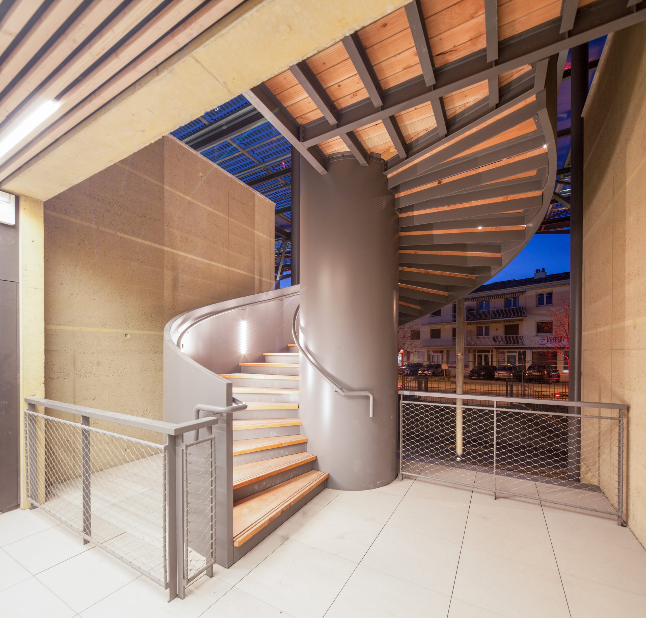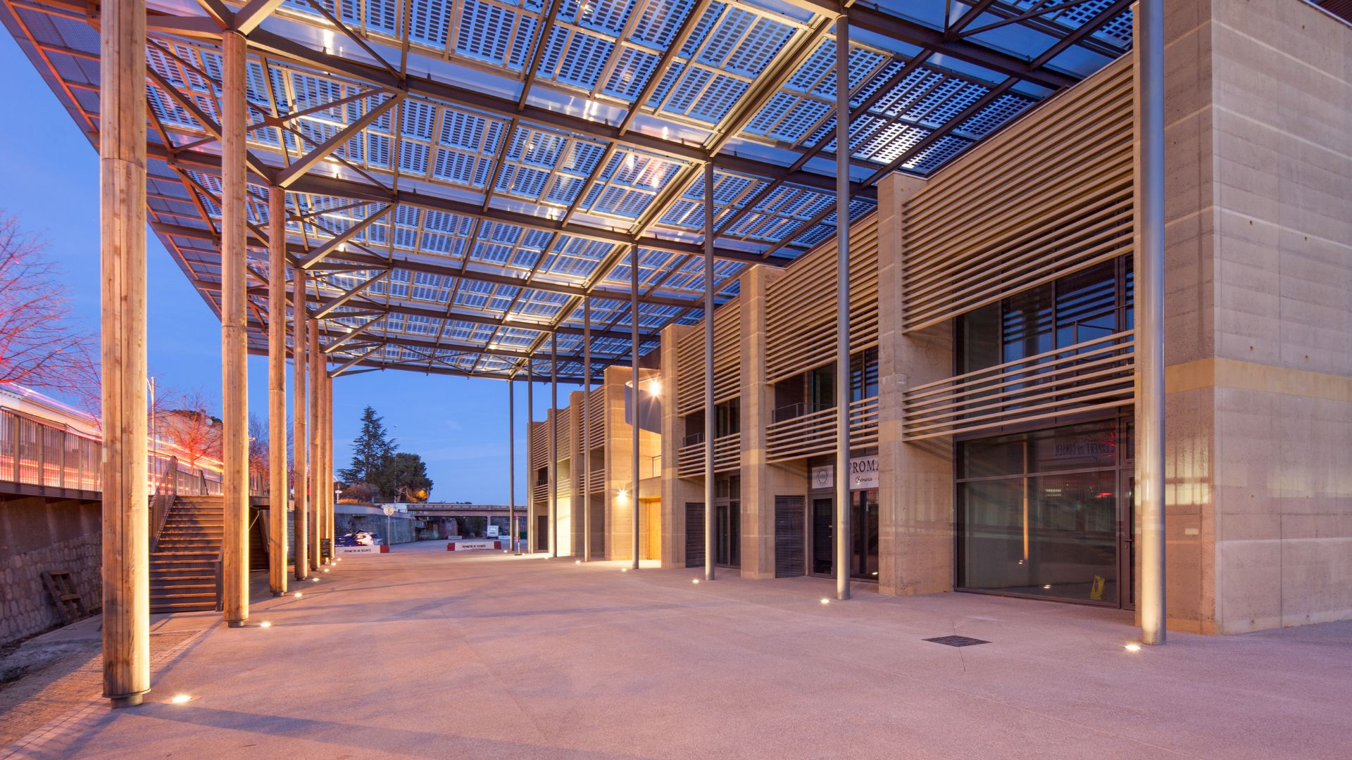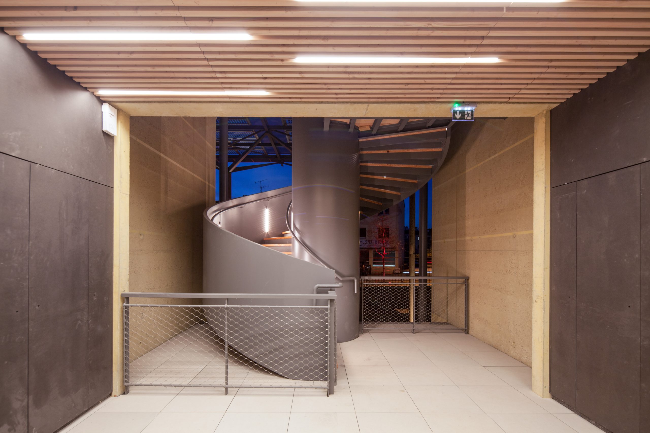 - Le bâtiment se décompose en entités architecturales identifiables répondant aux attentes du programme : commerces en rdc, bureaux en étages, terrasse lounge logée sous la couverture formant ombrière et abritant l’espace public.