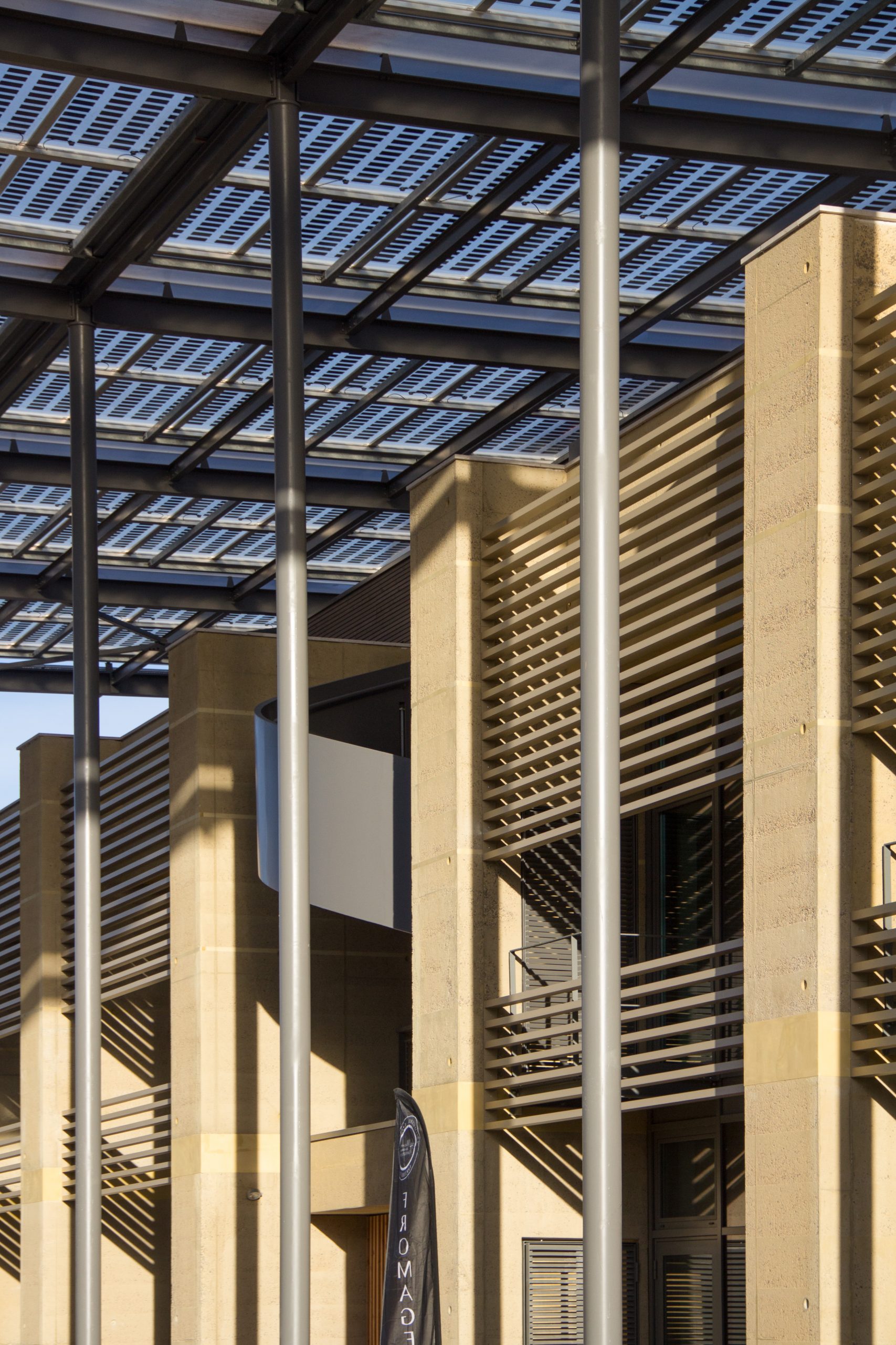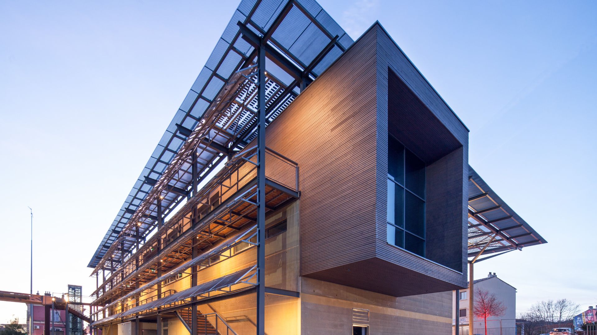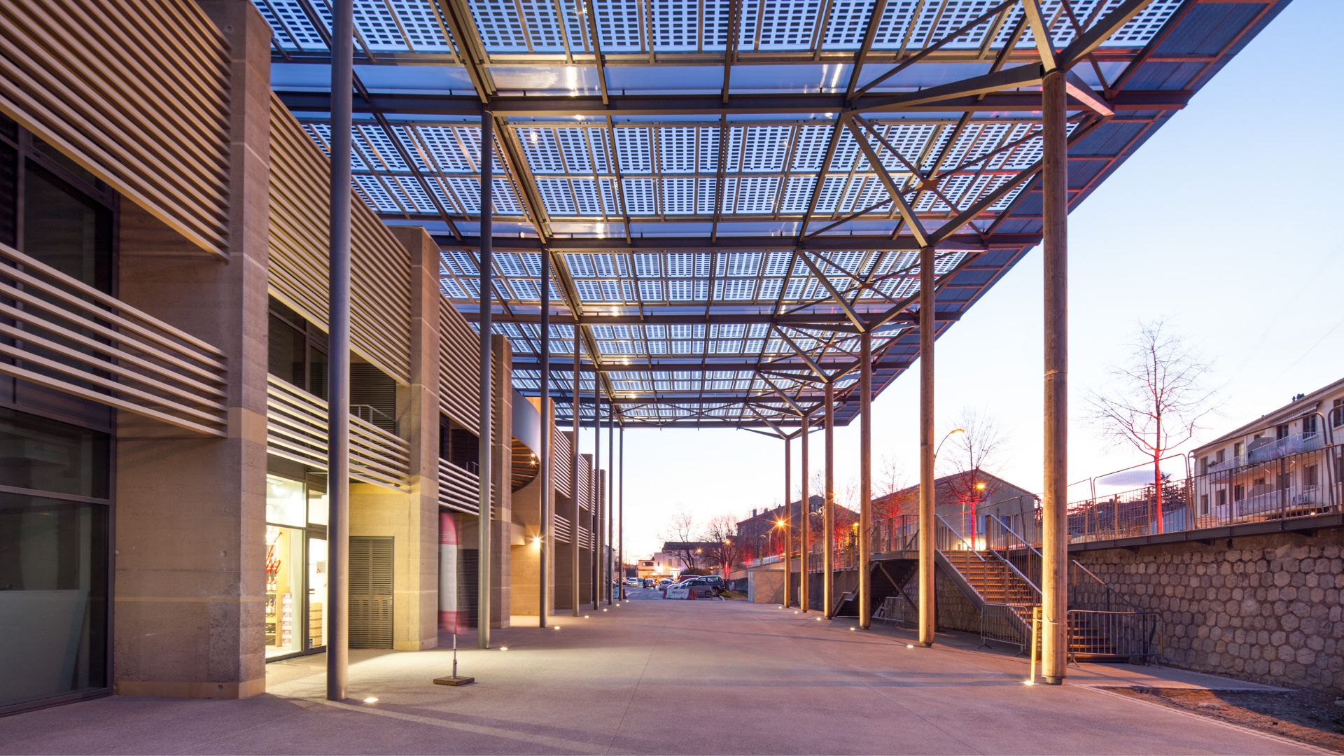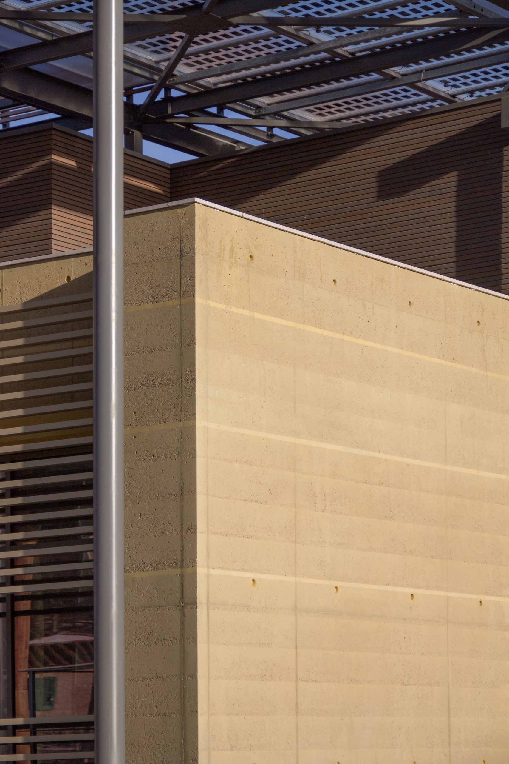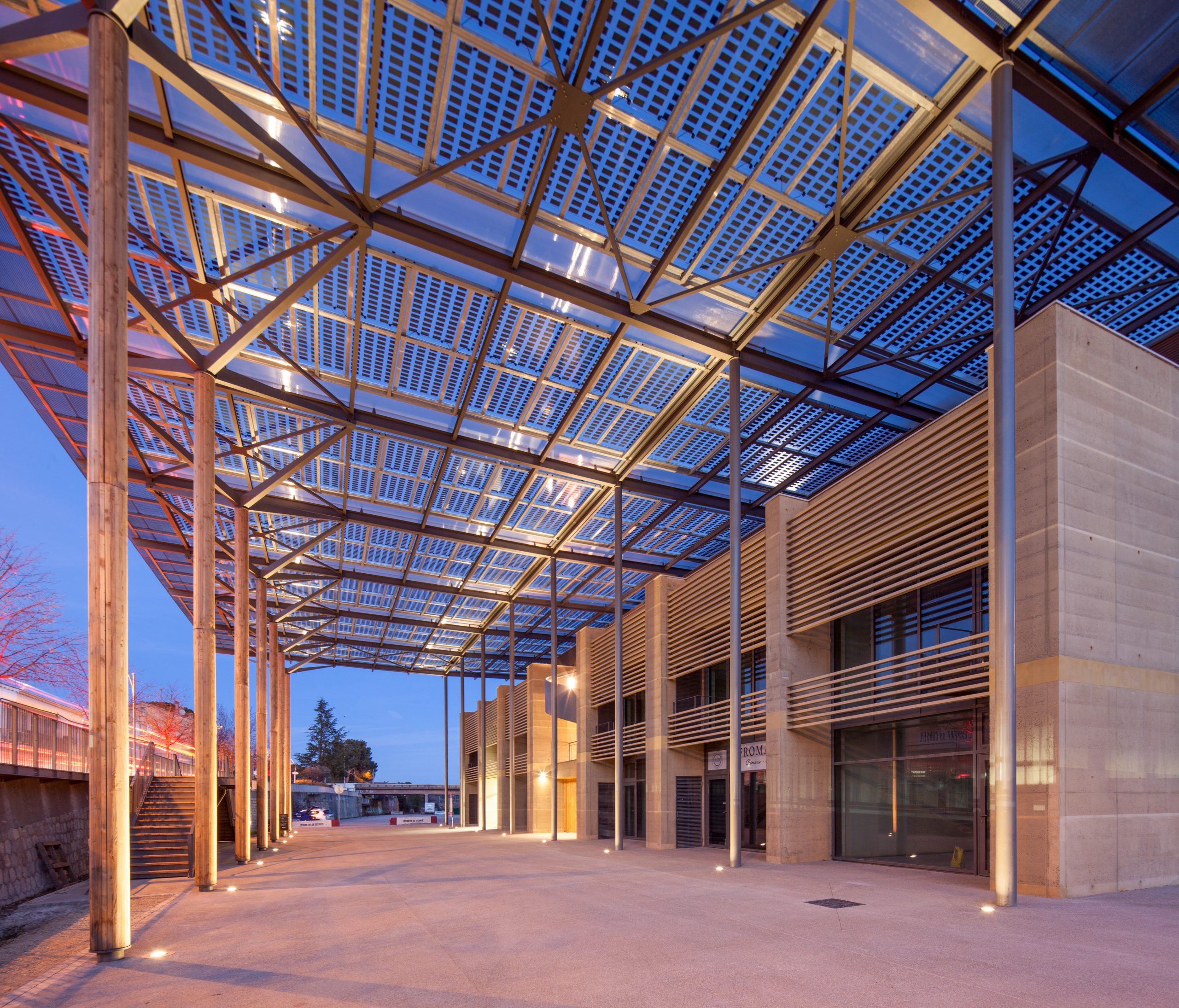 - Le bâtiment se décompose en entités architecturales identifiables répondant aux attentes du programme : commerces en rdc, bureaux en étages, terrasse lounge logée sous la couverture formant ombrière et abritant l’espace public.